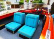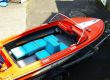 Keine Lust mehr auf Luftmatratze? Wir hätten da eine Alternative für den Sommer 2015: Susi ist ein flottes Sportboot, gebaut von der renommierten Bootswerft Hille, gegründet 1948 in Deutschland. Hille hat auch alle Begleitboote für die Olympischen Sommerspiele 1976 in München gebaut. Das Modell „Malibu 450" ist ein absoluter Klassiker, der noch heute gebaut und verkauft wird: 4,50 lang und 1,88 breit, ausgeliefert am 15.3.1975 in der schicken zweifarbigen Zeit typischen Lackierung Porsche Blutorange und Weiß! Das Boot wurde von einem Liebhaber liebevoll restauriert und mit einem neuen hellgrauen Bootsteppich und einer schicken Polsterung in RIVA Türkis mit orangefarbenen Kedern versehen. Es sind Back to Back Sitze verbaut, die ganz einfach zu einer Liegefläche umgeklappt werden können. Das Boot liegt auf einem speziell angefertigten Trailer der Firma Preugschat, von dem es bequem mittels einer Winde zu Wasser gelassen werden kann. Der Anhänger hat eine Zulassung für 100 km/h, so dass man das Boot auch "auf große Fahrt" in Richtung Gardasee, Mittelmeer oder Nordsee mitnehmen kann.