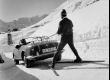 so betitelte Hans Truöl diese beiden Fotos. Texte auf beiden Fotos rückseitig: „Jedes Skihaserl, nimmt solch feschen Skilehrer gerne ans Schlepptau und fährt mit ihm und dem Wagen, wo der Hans hängt in Richtung Sporthotel.“ Tja, so machte man 1961 PR für Autos und Skitourismus in einem! Beide mit Archivstempel Hans Truöl, Alfa Romeo Giulietta Spider 1961, 235 x 180 mm, Halbe Magnetrahmen und Passepartout. KEINE Verwertungsrechte.