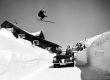 Eine der Spezialitäten des Fotokünstlers Hans Truöl war es, einen Skifahrer über ein Auto springen zu lassen und genau den richtigen Moment abzupassen, um ein scharfes Bild zu machen. Das ist ihm auch bei diesem Foto mit einem Alfa Romeo Giulietta Spider perfekt gelungen. Ganz ohne Motor und Mehrfachauslöser und vor allem ganz ohne Photoshop-Nachbearbeitung! Ohne Text mit Archivstempel Hans Truöl, Alfa Romeo Giulietta Spider. Aufgrund des Nummernschildes am Auto wahrscheinlich 1961. Format: 235 x 180 mm. KEINE Verwertungsrechte.