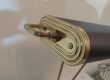Die Lampe ist dunkelgrau mit Messing-Gehäuse. Sie lässt sich in der Höhe und im Neigungswinkel mittels des V-förmigen Armes und des Reflektors variabel verstellen und bietet somit eine individuelle und optimale Ausleuchtung des Arbeitsplatzes. Der Lampenschirm ist frei nach vorne und hinten schwenkbar. Dieses französische Modell der Eileen Gray hat einen weißen Kunststoffschalter.